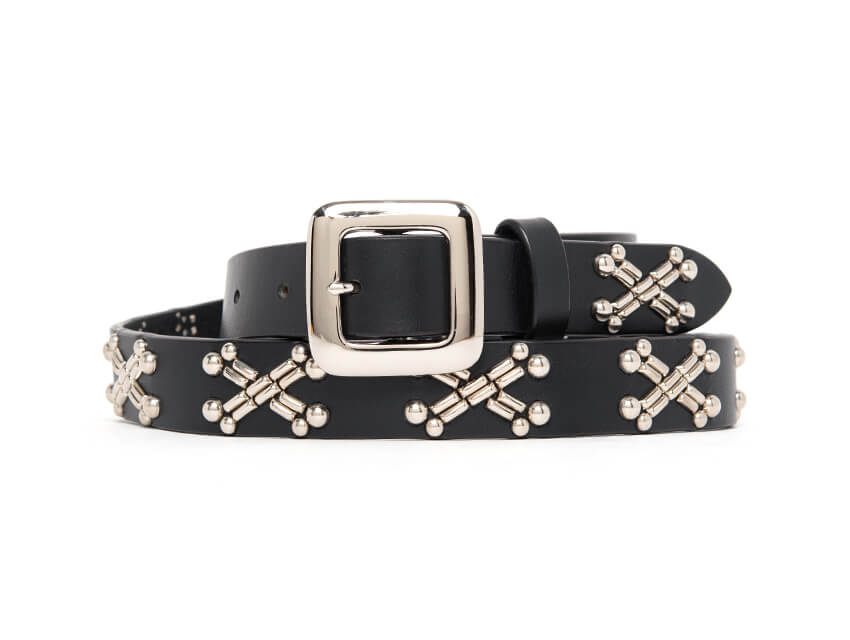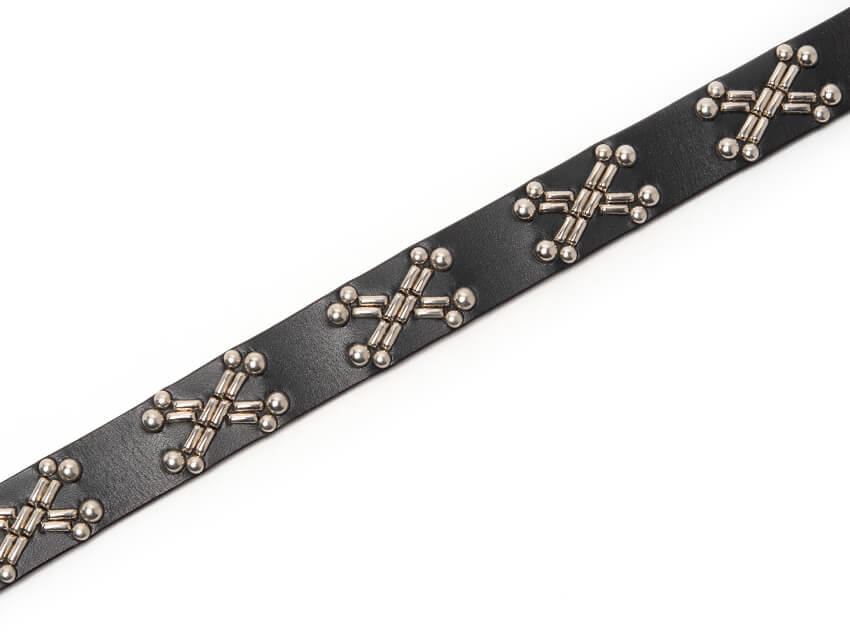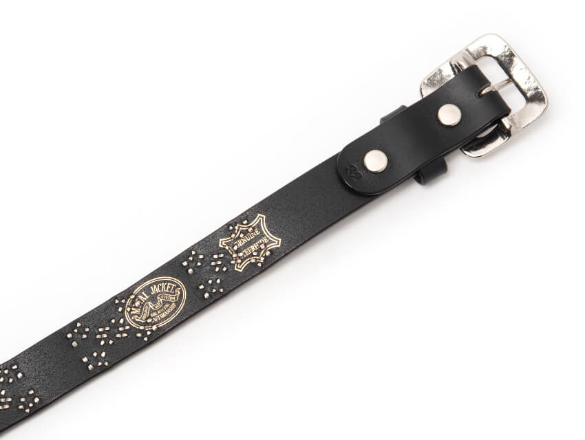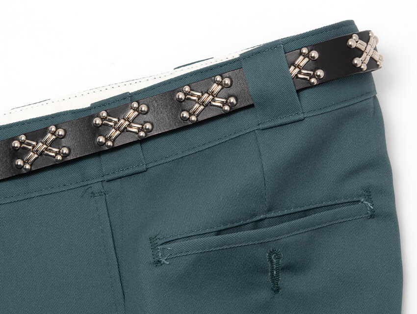 この普遍的なデザインをスタッズで表現し、ベルト全体にあしらいました。デニムをはじめ、様々なパンツにマッチし腰回りにインパクトを与えます。存在感のある表情、そしてレザーの醍醐味でもあるエイジングも楽しめる絶品に仕上がっております。使い込むほど腰回りに馴染み、艶と透明感が増していきます。スタイリングのアクセントにとてもお勧めな一本です。