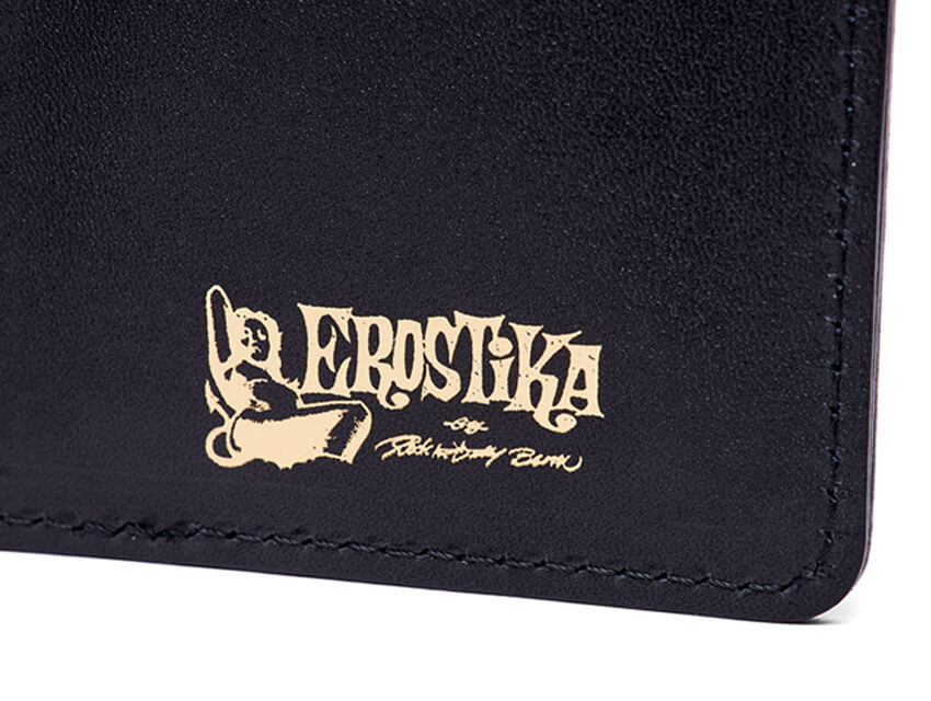 "DOUBLE SPY FUJIKO" CARD WALLET LEATHER COLOR BLACK SIZE ONE SIZE FITS ALL SPEC W93mm H123mm D30mm MaterialSTEERHIDE DETAILS Rockin'Jelly Bean作品"DOUBLE SPY FUJIKO"が落とし込まれたアート作品且つ氏の世界観を堪能できるデイリーユースのレザーカードウォレットをEROSTIKAと共にお作りいたしました。 UV硬化型の特殊なインクで革素材に直接インクジェットプリントを施しています。 カードスロット6箇所、マルチポケットが2箇所あり、お札は二つ折りにて収納可能。大きすぎず小さすぎず、手のひらに収まる絶妙なサイズ感でご使用いただけるカードウォレットです。 ご使用のモニターや、環境により実際の色味、質感が異なる場合がございます。また、サイズ表記はあくまで目安となり、素材や縫製等の関係上、多少の誤差が生じる場合がございますので、予め御了承ください。 天然の革を使用している為、革本来の傷、凹凸が付いている場合もござますので、予め御了承ください。 ¥32,000yen (+TAX)
