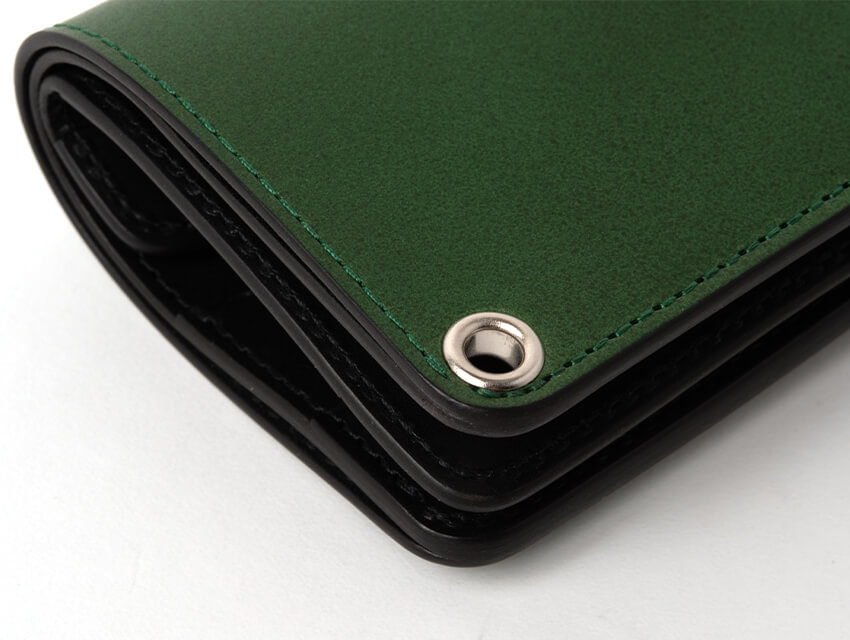 ※こちらのタイプはウォレットチェーンやウォレットコードを装備する為のホール付きになっております。※