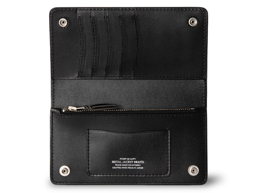 STAR STUDS LONG WALLET TYPE 2 LEATHER COLOR BLACK SIZE ONE SIZE FITS ALL SPEC W185mm H95mm D20mm MaterialSTEERHIDE Metal Parts (Zipper)タロン社製 収納部札室3室 / カードポケット6室 /マルチポケット1箇所/ファスナー式コインポケット1箇所 DETAILS 重厚な素材感が魅力的なアメリカンウォレットの最もシンプルな形のスタンダードロングウォレット、タイプ2です。 ウォレットの顔となる部分にはオリジナルスタースタッズを配置。星モチーフは光の象徴であり、古くから魔除けや幸運を呼び寄せるラッキーモチーフとして愛され続けています。 ファスナー部分にはTALON ZIPを採用。存在感のある表情、使い勝手も良く、そしてレザーの醍醐味でもあるエイジングも楽しめる絶品に仕上がっております。使い込むほど手に馴染み、艶と透明感が増していきます。 ご使用のモニターや、環境により実際の色味、質感が異なる場合がございます。また、サイズ表記はあくまで目安となり、素材や縫製等の関係上、多少の誤差が生じる場合がございますので、予め御了承ください。 天然の革を使用している為、革本来の傷、凹凸が付いている場合もござますので、予め御了承ください。 ¥62,000yen (+TAX)